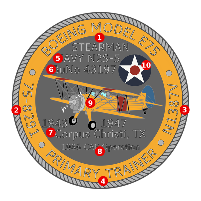 At the outset of World War II aircraft purchase orders assigned both USAAF serial numbers (“S/N”) as well as Navy Bureau of Aeronautics numbers (“BuAer No” or even “BuNo”) to aircraft purchases. In 1942 750 Model 75s – specifically N2S-5s – were ordered for the Navy with Army-assigned S/Ns of 42-109026 – 42-109775. Boeing C/N 75-8291, corresponding to USAAF S/N 42-109258, was completed on August 11, 1942 and delivered to the Naval air station of Corpus Christi, Texas.