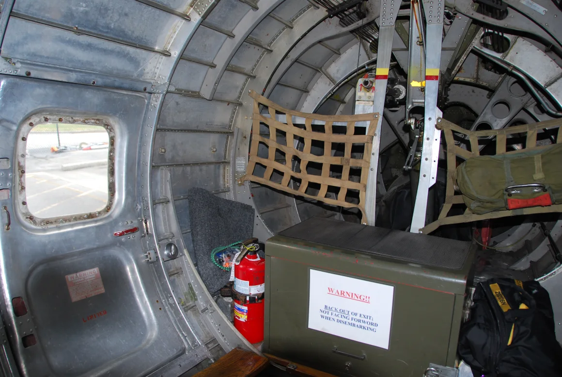 At one point I step carefully across a gun ball turret embedded into the floor, where a small gunner would fire on enemy planes. A stiff wind whips into my face through a quarter-inch-wide gap between the turret and the plane’s body. Waaaaay down below I can see the trees and homes of Atlanta rushing by at about 160 mph.