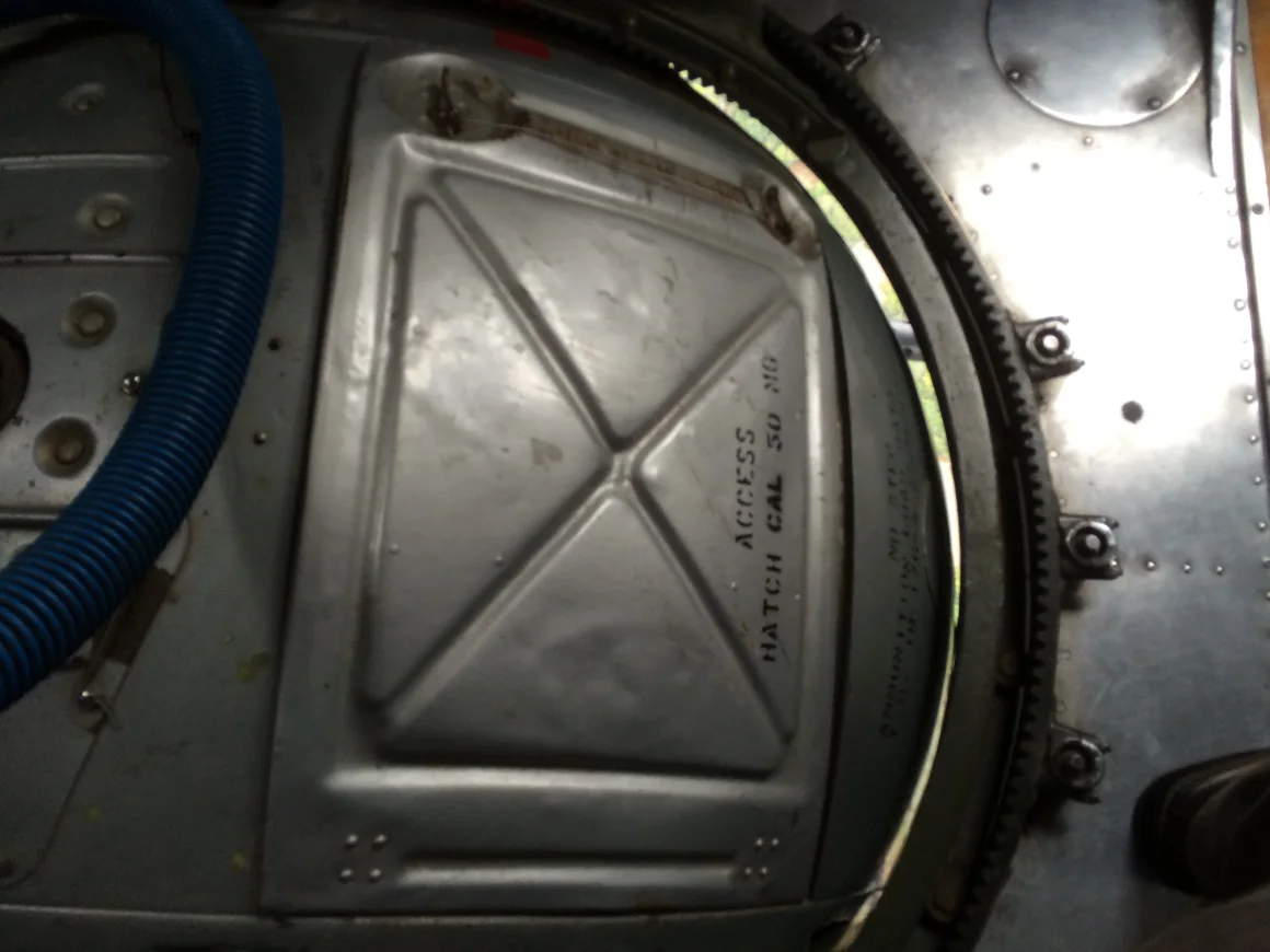There they are – just a couple of feet above me. The wire cables directly connect cockpit controls in the front of the plane to the tail rudder and “elevators” in the back. Basically, they help steer the plane. So yeah, we kind of need those to work. Note to self: Don’t touch the cables.