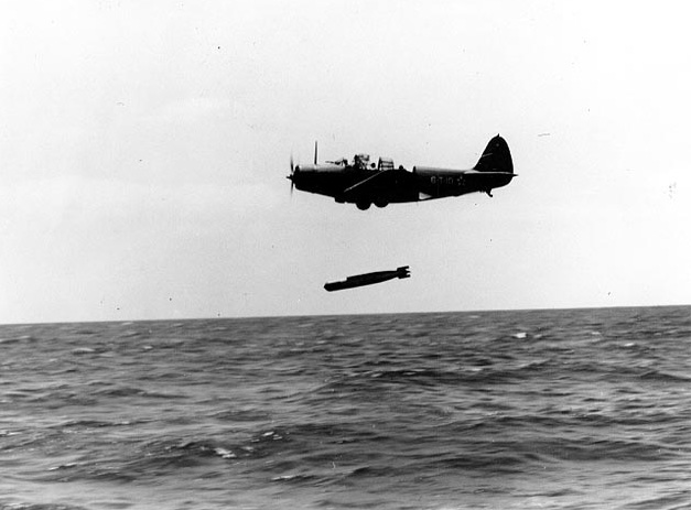 At the Battle of Midway, beginning at 0702, fifteen Douglas TBD-1 Devastator torpedo bombers were launched from the United States Navy aircraft carrier USS Hornet (CV-8) along with squadrons of Douglas SBD Dauntless dive bombers and Grumman F4F Wildcat fighters.