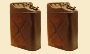 During World War II the United States exported more tons of petroleum products than of all other war material combined. The mainstay of the enormous oil-and gasoline transportation network that fed the war was the oceangoing tanker, supplemented on land by pipelines, railroad tank cars, and trucks. But for combat vehicles on the move, another link was crucial; smaller containers that could be carried and poured by hand and moved around a battle zone by trucks.
